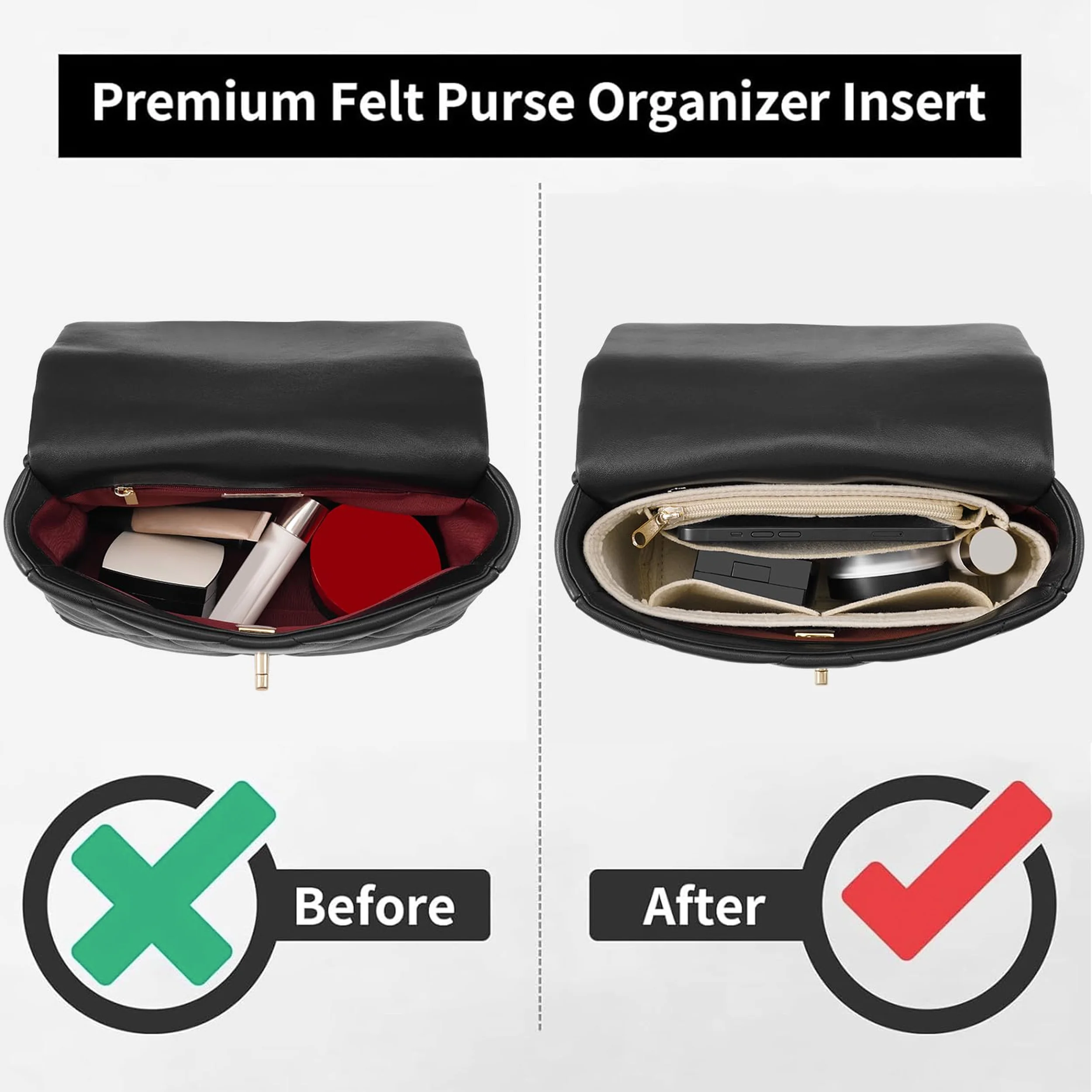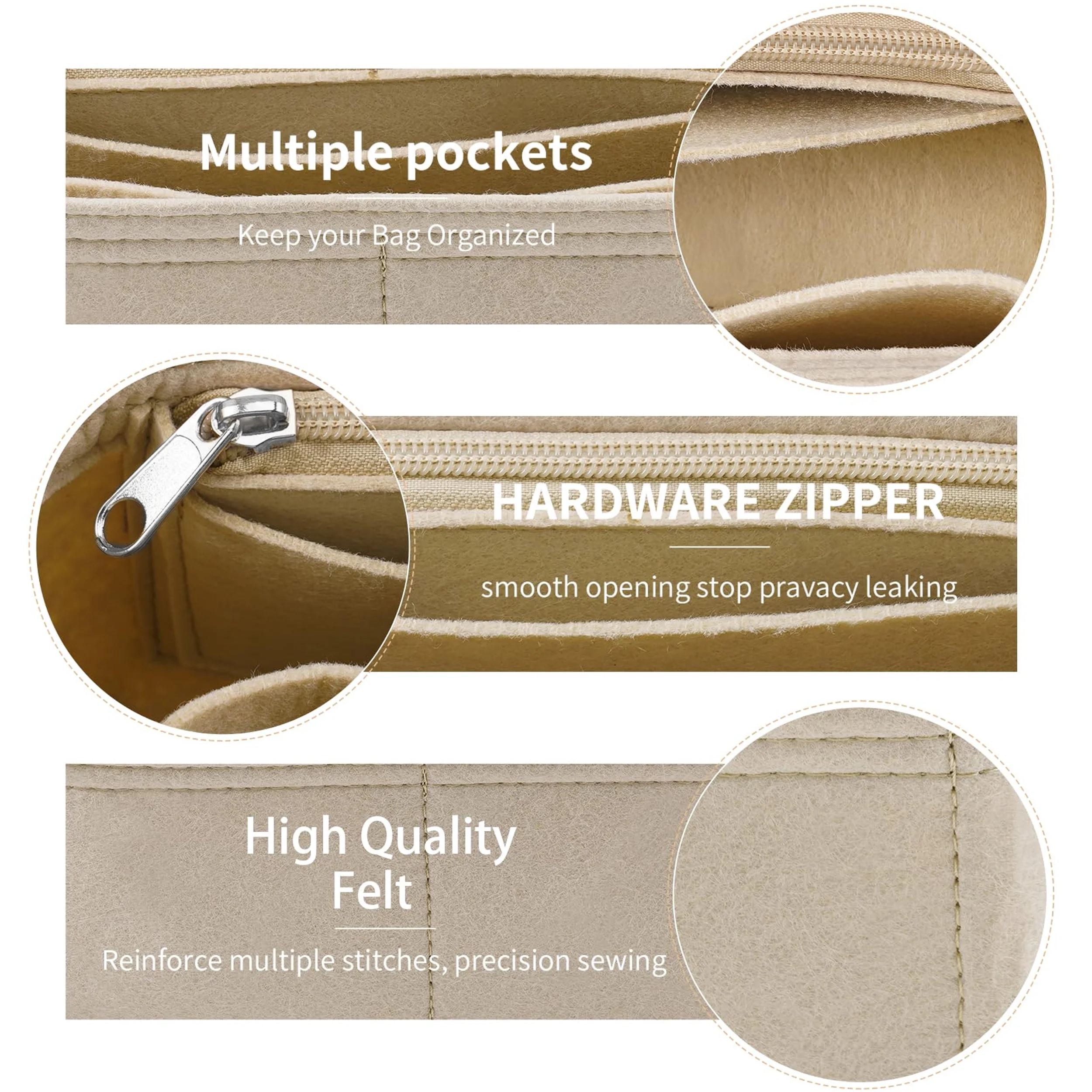 Felt Purse Organizer Insert with Zipper – Inner Liner Pouch for Shoulder Bags, Handbags & Totes, Women Storage Bag, 3 Size